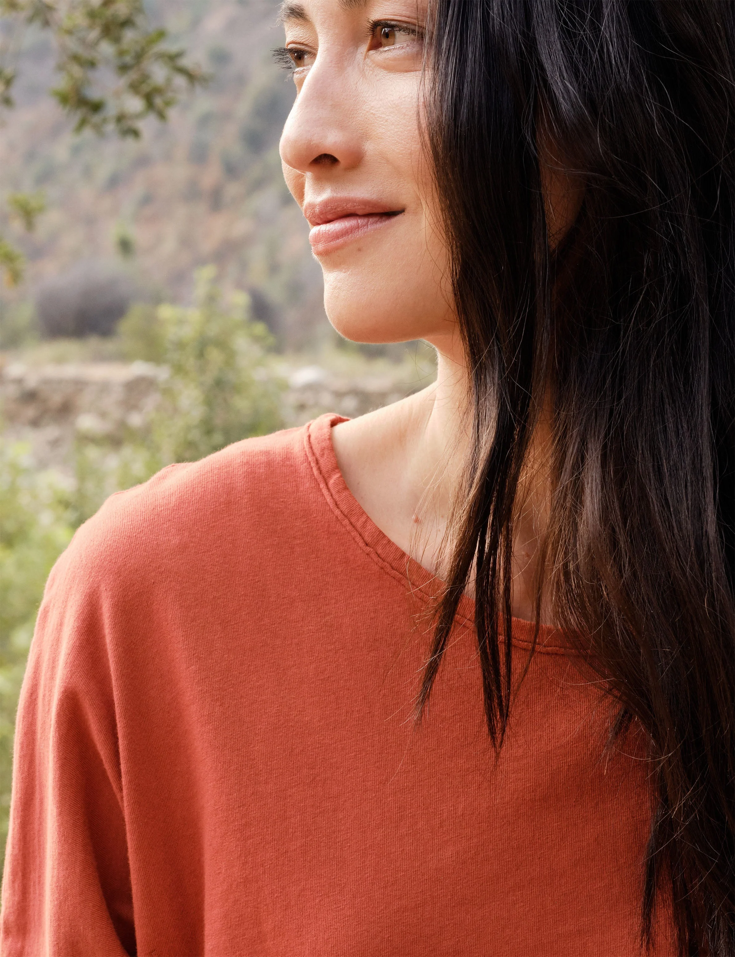With architectural elements and an eye for careful construction, our LAB325EJ takes long sleeve tees to an entirely new level. With a single seam down the shoulder, this tee has a Continuous Sleeve with no shoulder seams and is more fitted through the body than our other continuous sleeve styles.