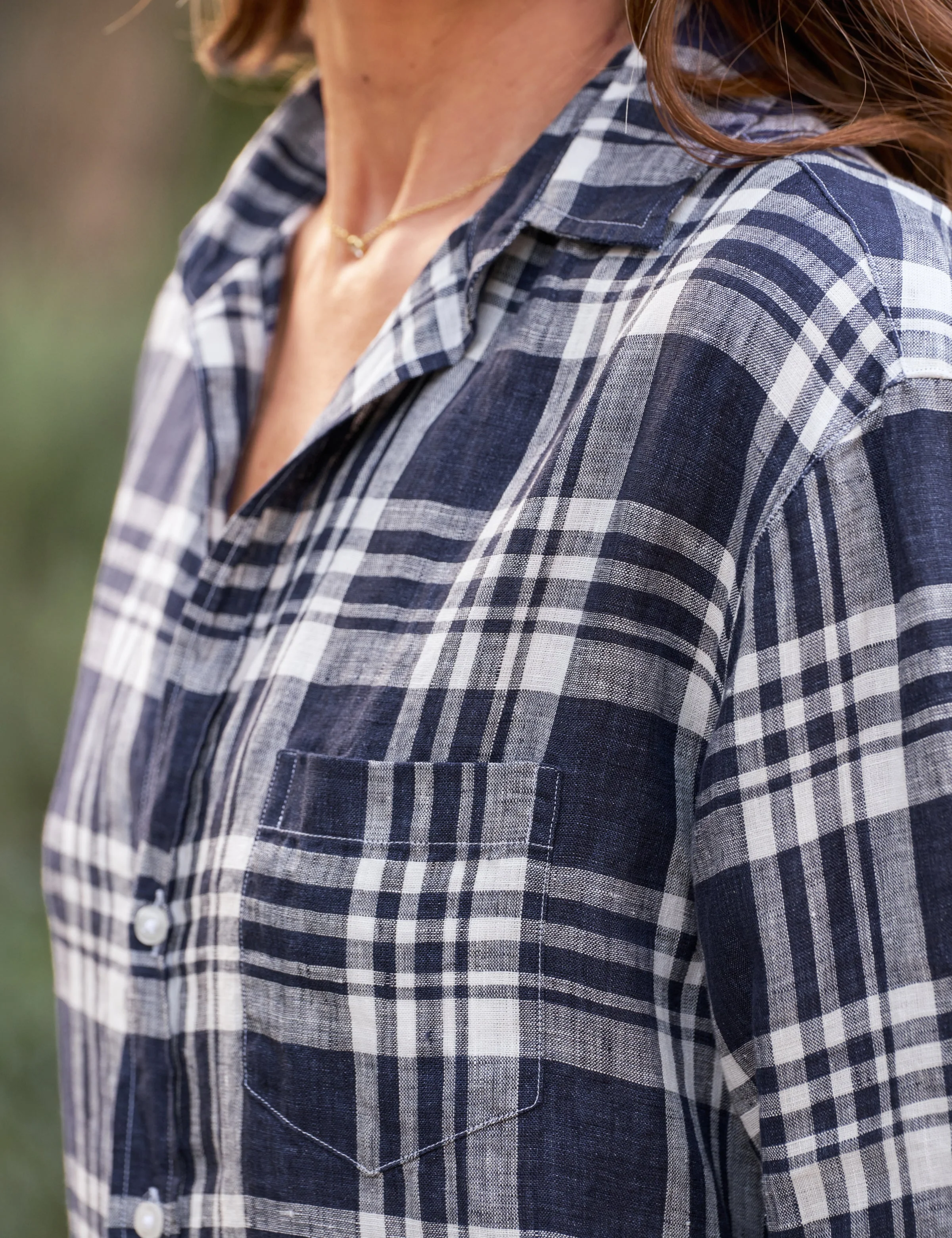 Consider Mary your four-seasons favorite. Ridiculously flattering thanks to a loose silhouette and just-above-the-knee hemline, this classic shirtdress moonlights as a breezy cover-up and works overtime on the weekend paired with pants.